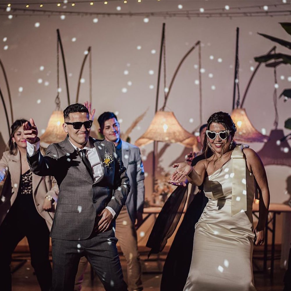 DJ en vivo y música personalizada, animación de la celebración, iluminación para recepción y fiesta, cabina fotográfica y efectos especiales.